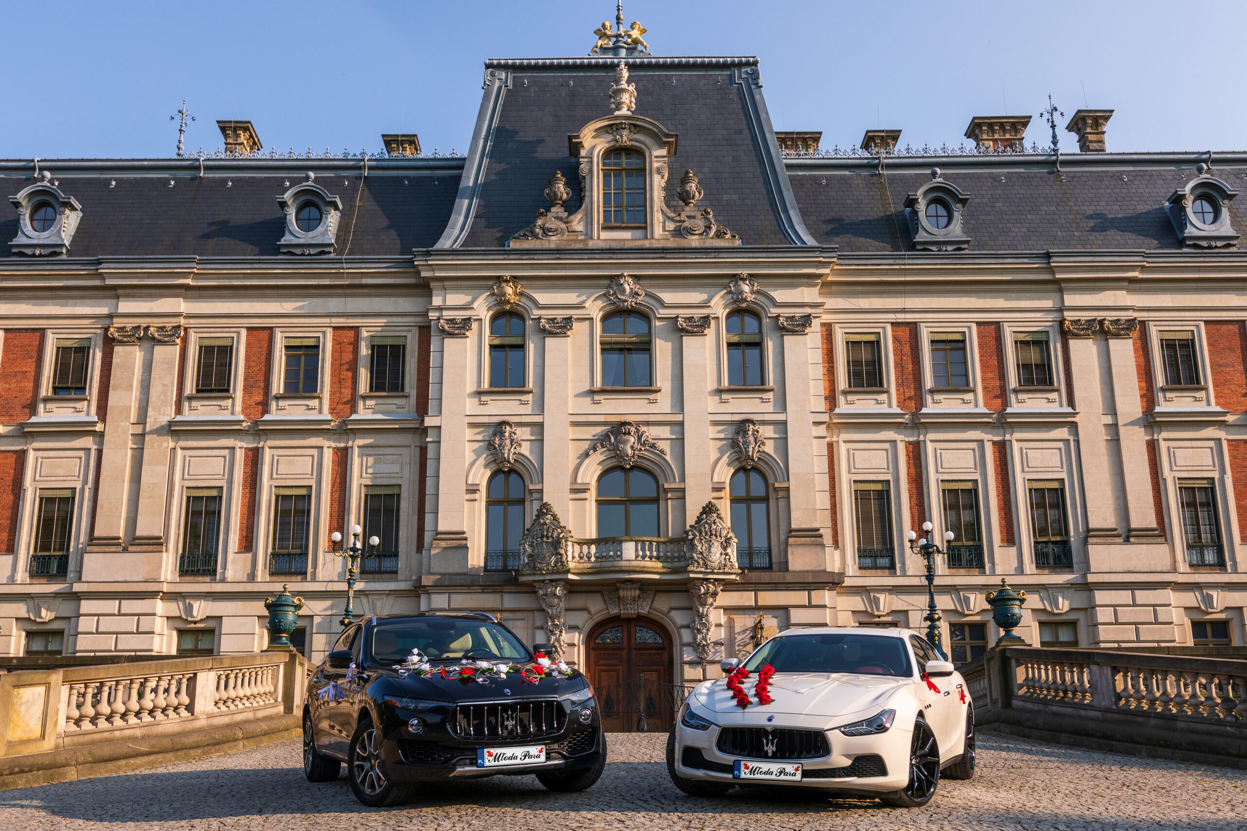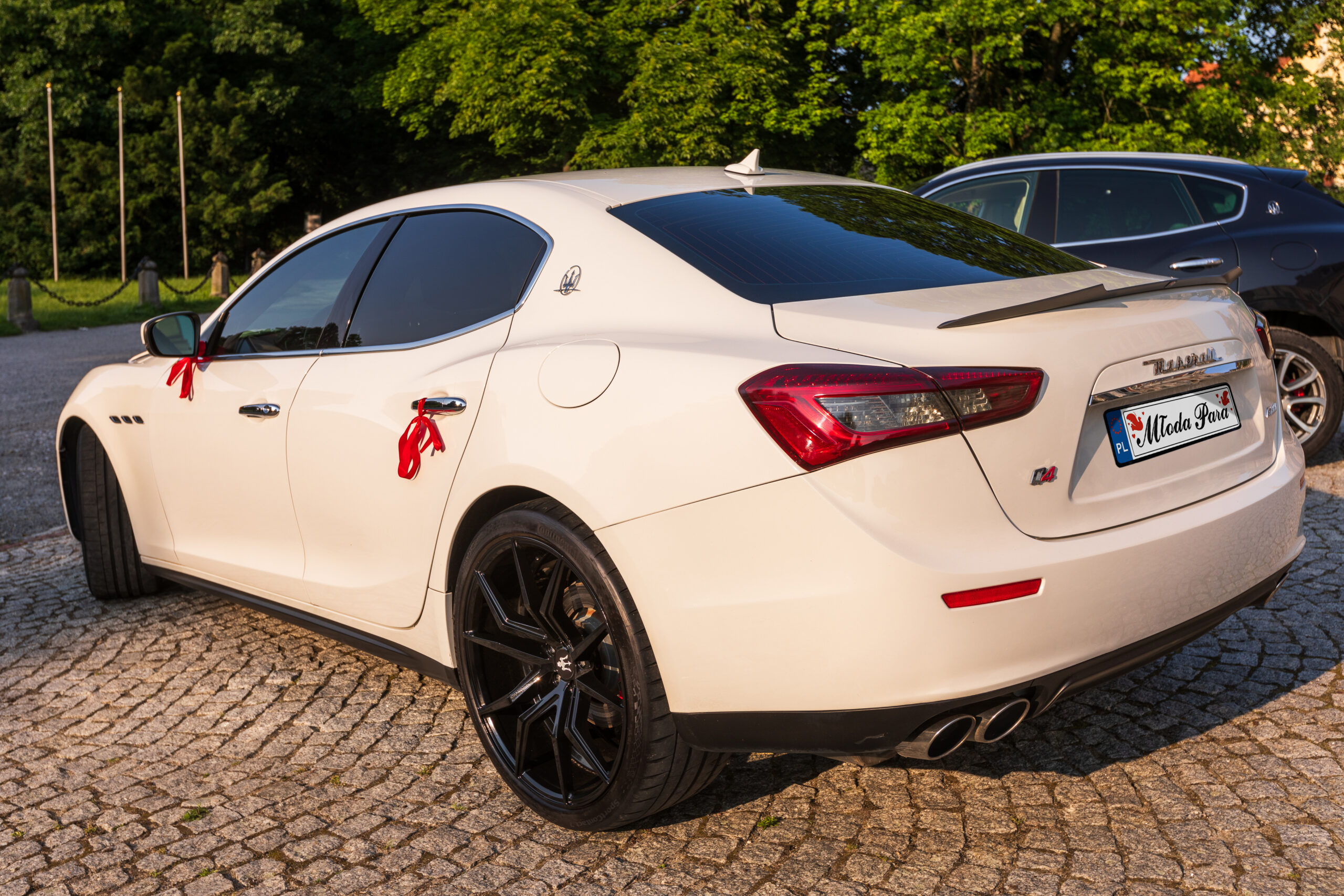 Dwa samochody, dwa charaktery, jedna misja – robić wrażenie. Biel Ghibli i czerń Levante w prawdziwych kadrach z naszych realizacji. Zobacz, jak wygląda luksus, kiedy stoi przed kościołem albo startuje spod klubu.